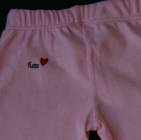 these little pants are the perfect complement to our “baby ts” and “baby bodysuits.” cut generously, they are easy to put on and soft against the skin. in pink or black (unisex) with the fuss logo placed on the booty, they are simply chic and match many an outfit. sourced from american apparel. made in the usa. machine washable. pull up and go!